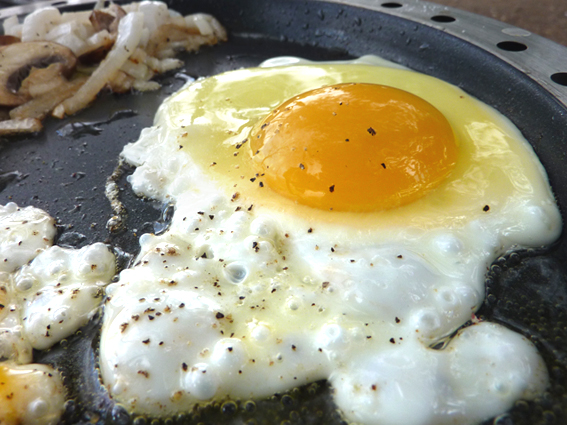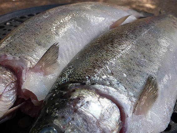 התחלנו באמת עם חביתות ובמקביל השתמשנו במנגל קטן וחד פעמי לנקניקיות כדי לזרז את העניינים כי כולם היו רעבים. כשעניינים נרגעו התקדמנו למנה המיוחדת, פורל מעושן.