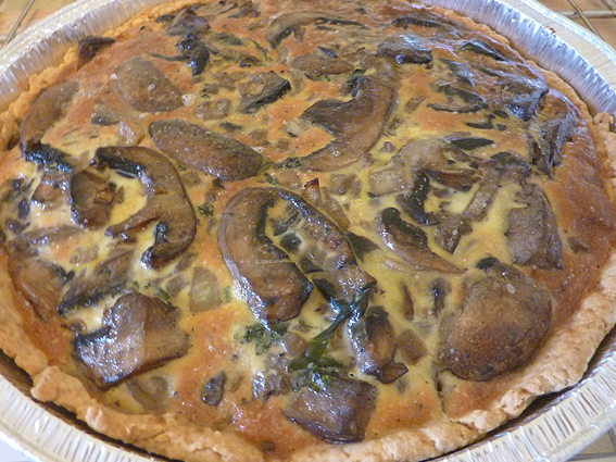 מכינים מהחומרים לבצק גוש חלק. מרדדים את הבצק לעלה דק ומעבירים בעזרת המערוך לתבנית המרופדת בנייר אפייה.שמים בצד 15 פטריות שלמות קטנות. את שאר הפטריות פורסים לפרוסות ושמים במחבת עם חמאה והבצל,מטגנים מעט.מוסיפים למחבת חצי כוס שמנת,בוחשים,מפזרים מעט מלח ופלפל שחור ולבן ומבשלים תוך בחישה.מצננים.מפזרים על הבצק מעט פלפל שחור גרוס ופרוסות גבינת פטה.מניחים על הגבינה את עיסת הפטריות החתוכות, ומעליה את 15 הפטריות השלמות.בקערה טורפים את הביצים עם יתרת השמנת, מתבלים במעט מלח ופלפל ויוצקים על הפטריות. אופים כ-45 דקות או עד שמוכן.מצננים, מגישים אחרי כמה שעות כדי שהפאי יתייצב.