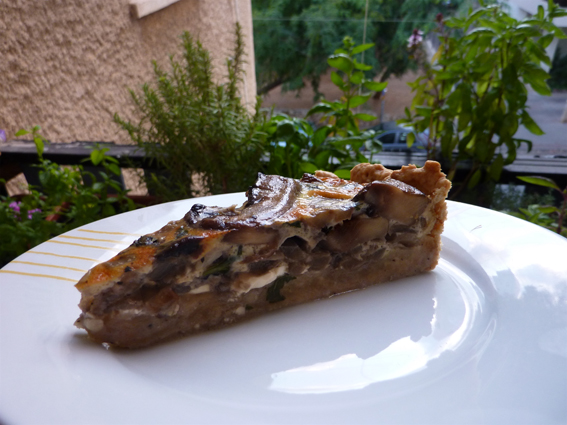 לא הייתה לי תבנית בקוטר 22 , אלה בקוטר 26 . הכפלתי את מנת הבצק כדי שיספיק לתבנית גדולה יותר.לא היה לי קמח תופח, השתמשתי בקמח רגיל כמות כפולה ( בגלל התבנית) והוספתי שקית של אבקת אפייה.היו לי פטריות ממש גדלות אז פשוט פרסתי את כולם ולא השארתי שלמות. במהלך הטיגון הוספתי לפטריות 3 שיני שום ומספר עלי בזיליקום טרי .סה"כ הייתה לי קופסה אחת של שמנת ( לבישול) , לדעתי זה נתן יתרון כי עיסת פטריות לא יצאה נוזלית מדי ובצק שבתחתית נאפה בצורה אחידה וטובה ( במתכון הזה אין צורך לאפות את התחתית לפני) . השתמשתי ב-2 ביצים במקום 3. השתמשתי בגבינת פטה כבשים ולא ספרתי את הפרוסות , פשוט השתדלתי לכסות את כל תחתית הבצק.