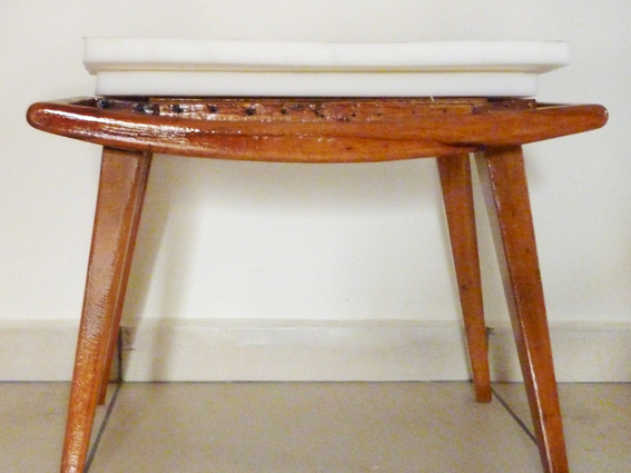 בשלב האחרון כדי לגרום לשרפרף שלנו להיראות מגניב וטרנדי יותר, בת זוגתי שייפה אותו קלות כדי לחשוף את הצבע הקודם. בשיטה הזאת עושים הרבה רהיטים כדי לתת מראה של פרנץ' קאנטרי או בשפה מקצועית המראה של "שאבי שיק".