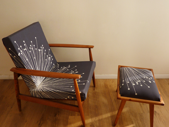 בשלב הבא עטפתי את השרפרף בבד שקנינו בחנות הכי מגניבה בנחלת בנימין, "דנדו". את החנות מנהלים זוג מקסים שמייבא בדים יפיפיים.