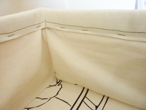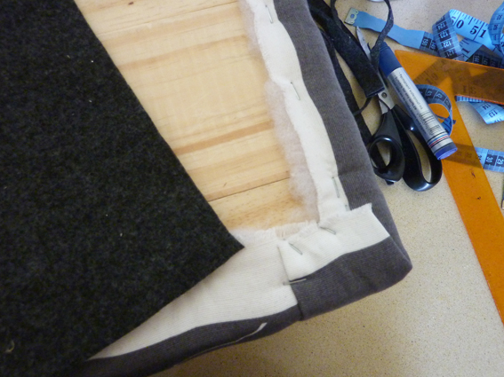 דבר ראשון צריך לרפד פנים, אפשר עם אקדח סיכות ואפשר לתפור מן שק שמותאם לגודל הארגז שלכם, ומתלבש עליו, ככה :