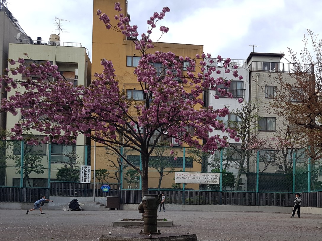 מאחורי הרחוב שלא נגמר מצאנו שכונה ישנה עם הרבה מקדשים, בתי אבות ומגרשי משחקים. התיישבנו לנוח תחת סאקורה וראינו ילדים משחקים בייסבול.